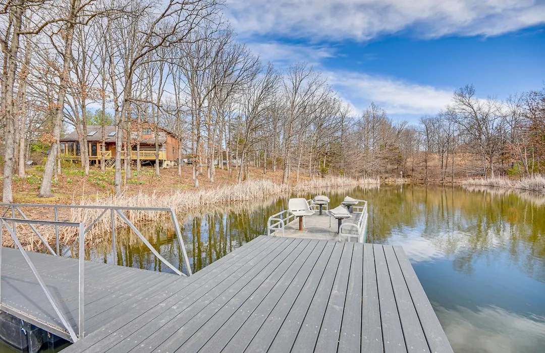 A Historic Clark Cabin With Deck And Fishing Pond Access dispõe de cozinha totalmente equipada equipada com refrigerador, forno e fogão.